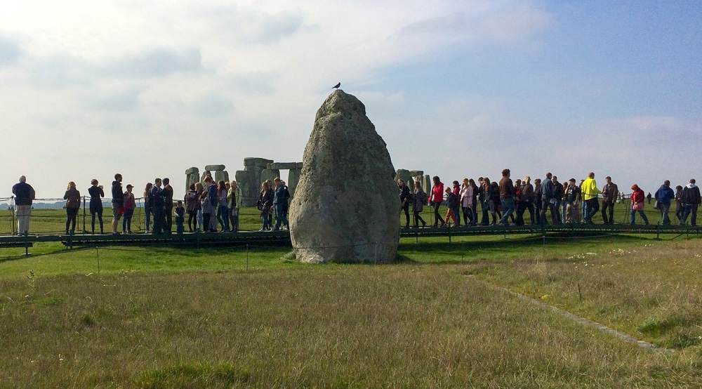 If you would prefer to appreciate Stonehenge at ease in its landscape, it should be approached on foot, as the ancients did, from the Woodhenge direction. It’s just a two-mile walk from Durrington, along lush, buzzing hedgerows, across wide, empty, rolling grassland, past the King Barrows, the Cursus and along the ancient Avenue to the Heel Stone. As you approach, the henge looks so unexpectedly small 2 in the wide open landscape that it is easy to miss. “Is that it?” you might wonder, “Is that really all there is to it?”. Then, as you near the Heel Stone, hordes of visitors crystallise into view just the other side of the wire fence that keeps the non-payers, who have correctly approached the stones along the ancient Avenue, out and keeps the payers, who have, perhaps incorrectly, rocked up on the English Heritage bus, in. Now, you have the impossibility of a decent photo of the stones without a riotous decoration of fluorescent walking jackets and selfie-sticks.